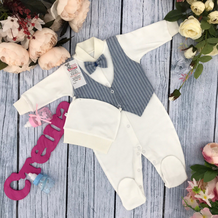 Теги: Купить комбинезоны оптом от производителя. 224-Г. Комбинезон, хлопок 100% интерлок, "Жилет новый" голубая полоса цена,отзывы официальный сайт "Стеша Златоуст"
