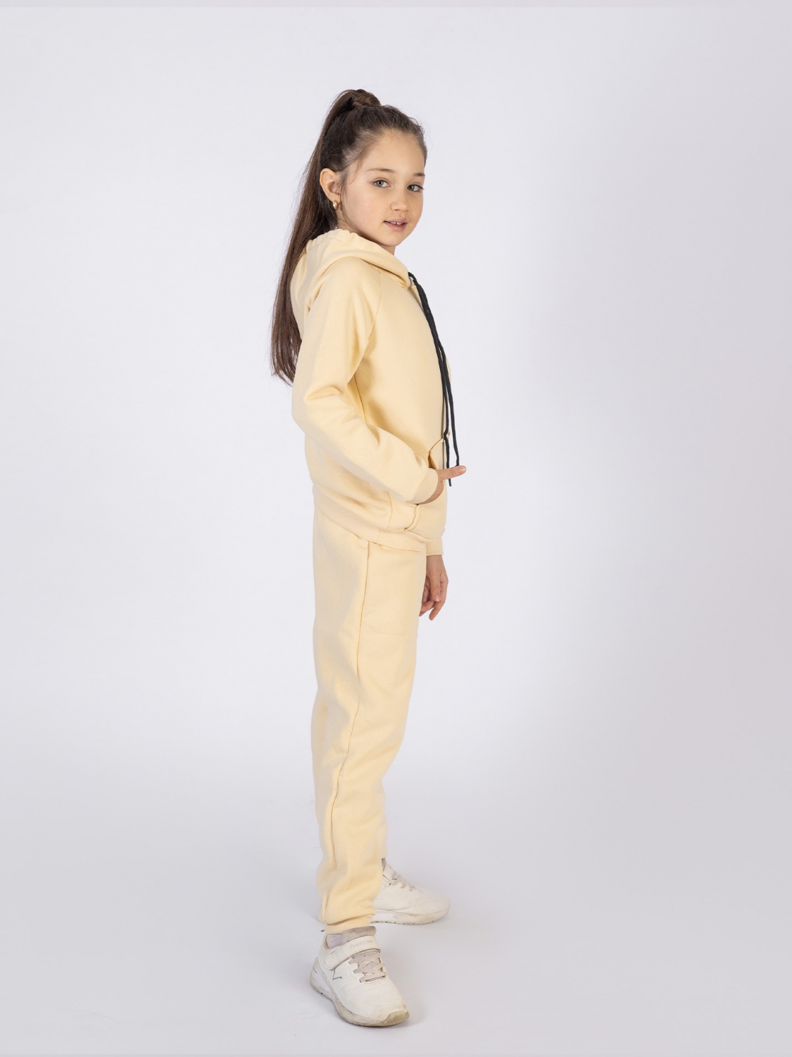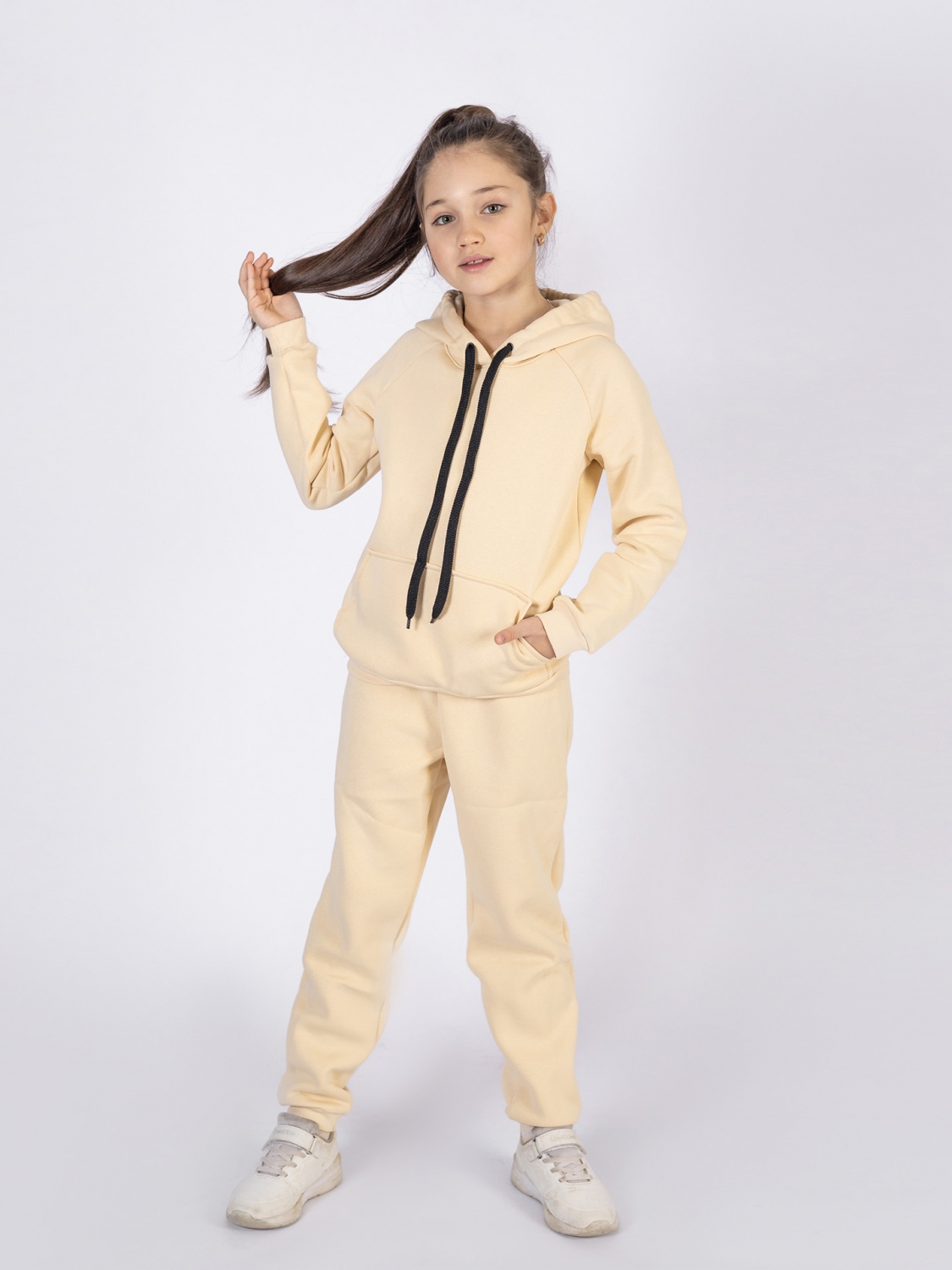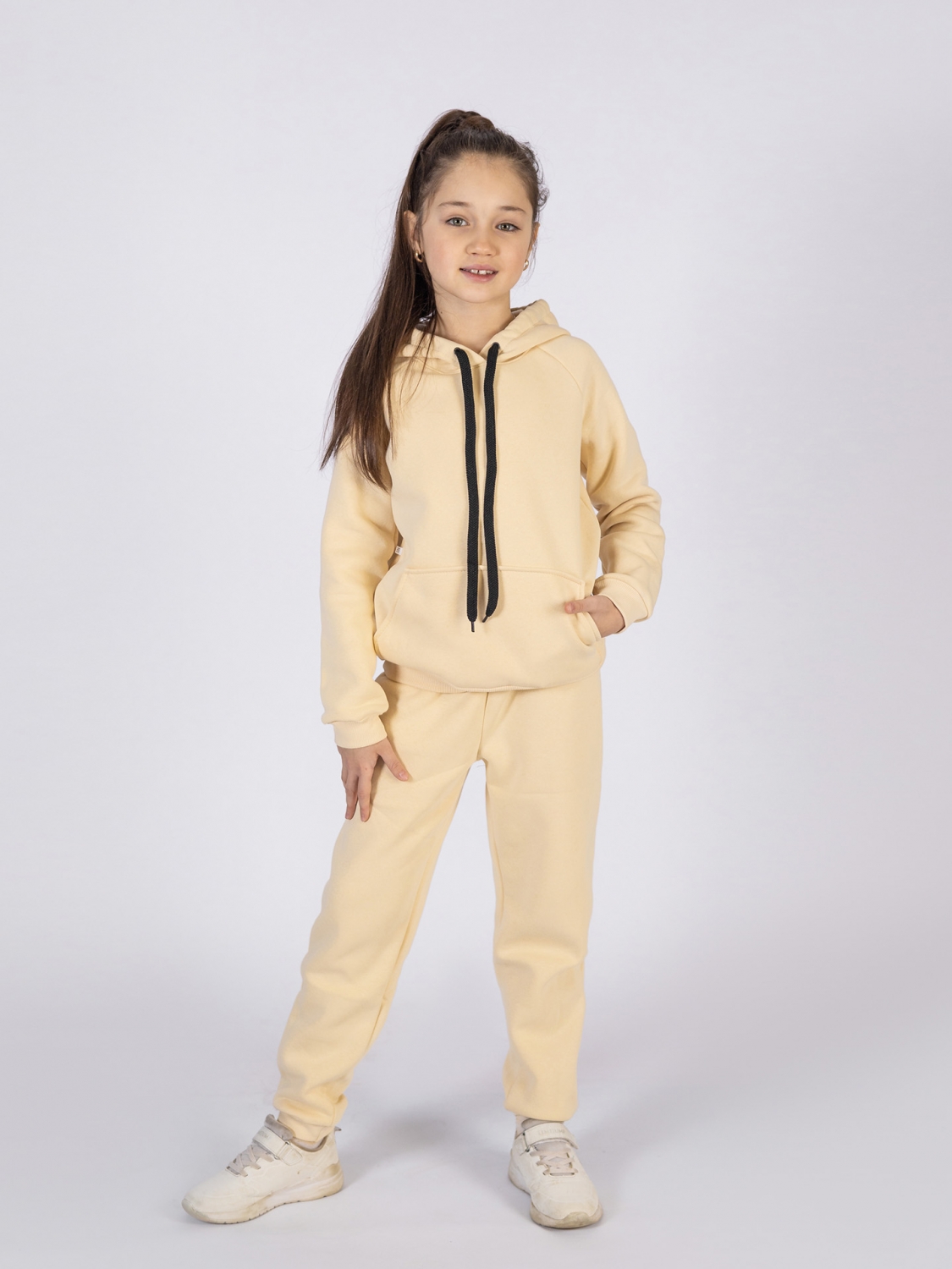 Купить оптом 296-СЛ. Свитшот с капюшоном + Штаны, хлопок 65%, 35% ПЭ, 3-х нитка (начес) сливочный 98,104,110,116 в Златоусте