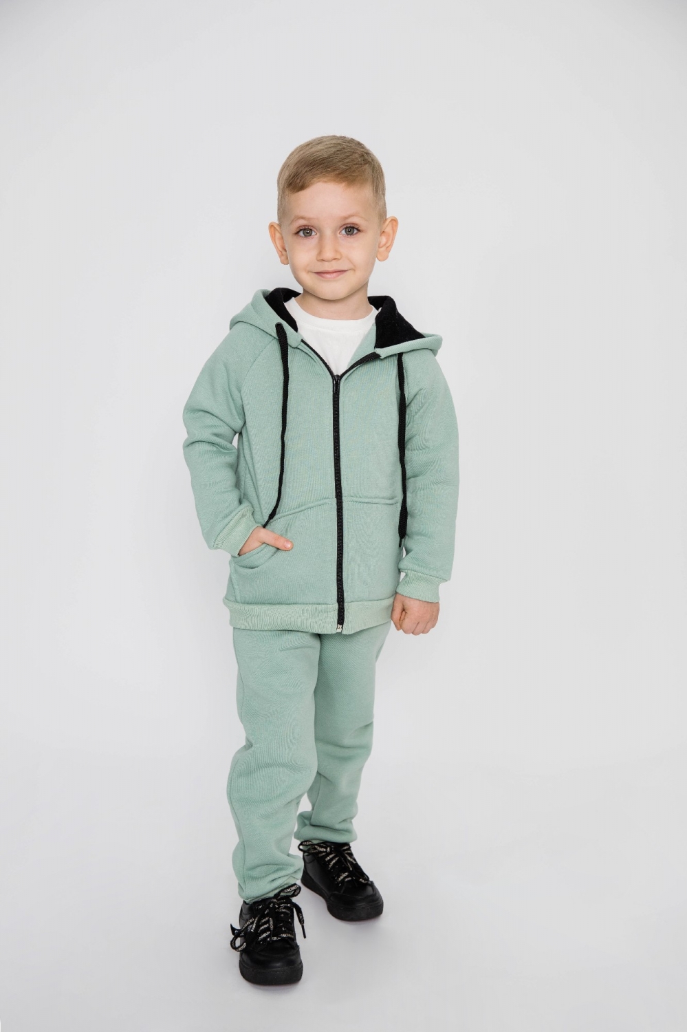 319-ОЛ. Костюм детский на молнии, олива, хлопок 65%, 35% ПЭ, 3-х нитка (начес) 80,86,92