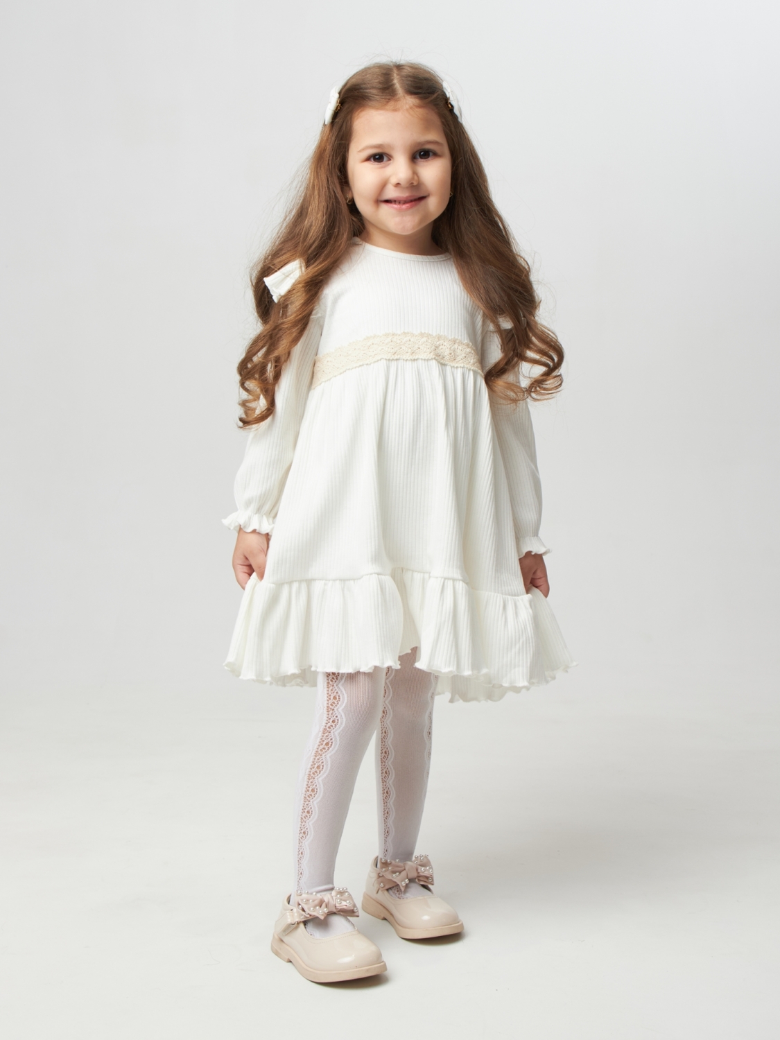 Купить оптом 332. Платье детское из лапши, хлопок 100%, молочное, р. 98,104,110,116 в Златоусте